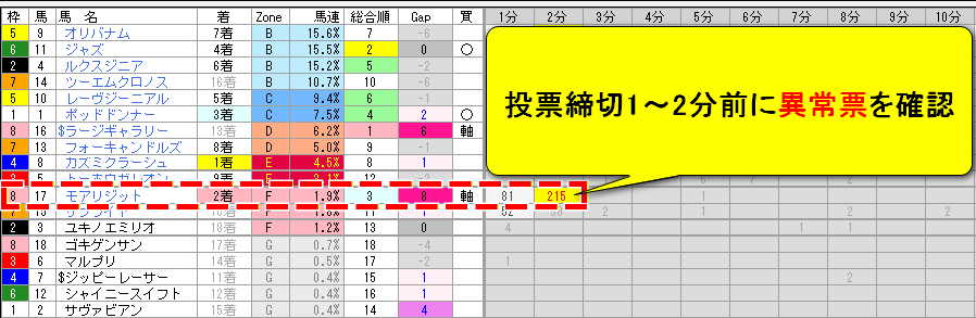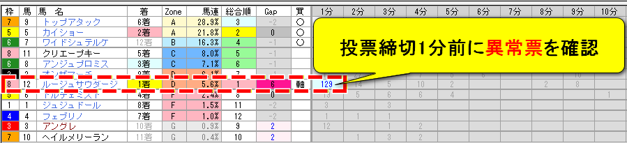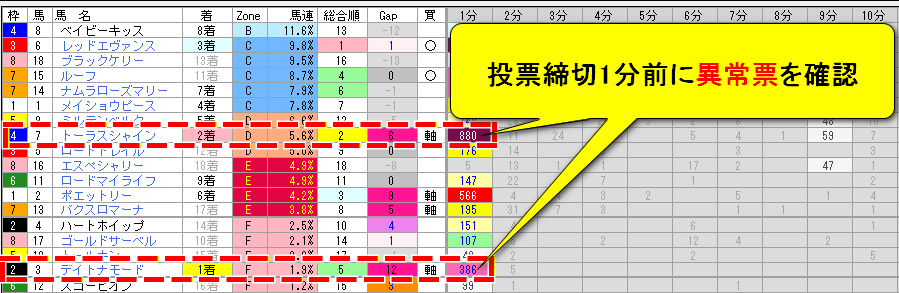 - 11番人気の馬に対する異常投票を検知