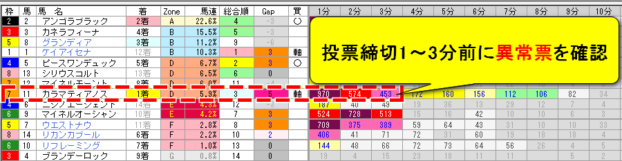 - 7番人気の馬に対する異常投票を検知