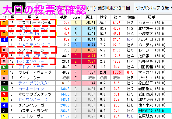 ジャパンカップのオッズ分析表は、2025年11月30日 15:29に配信されます