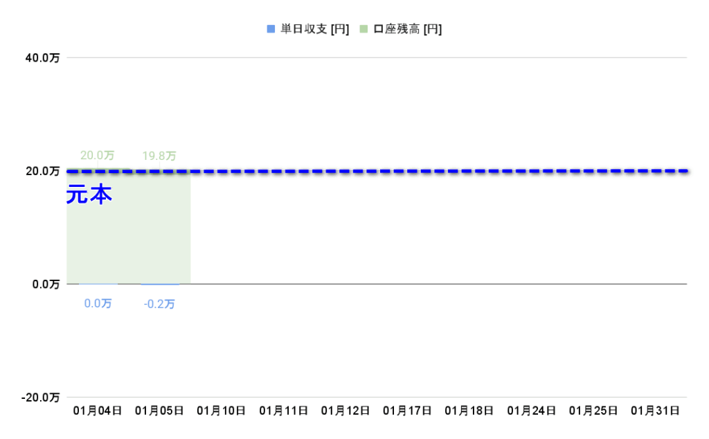 | 月 | 単月収支 [円] | 回収率 [%] | 口座残高 [円] |