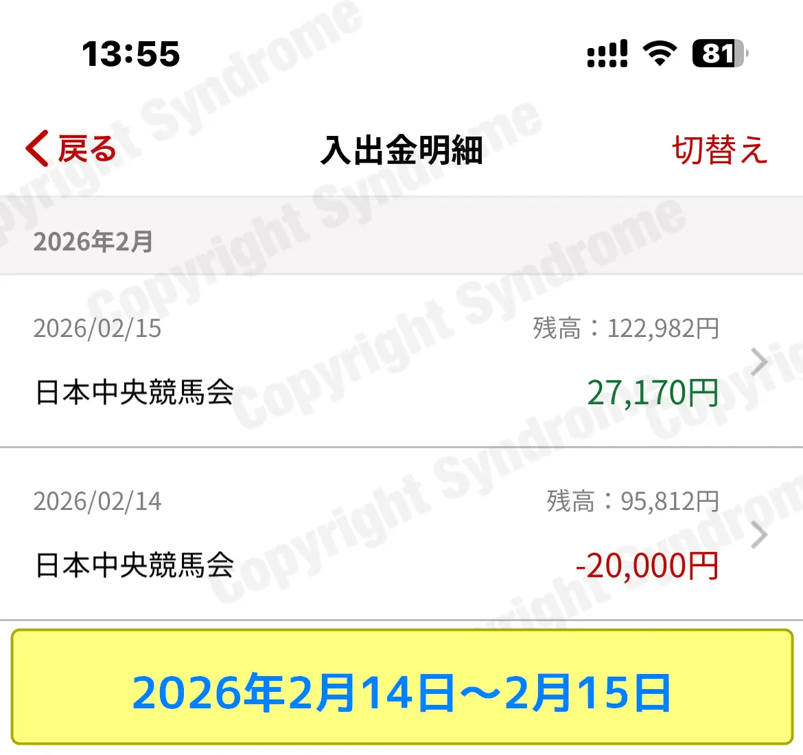 1年間の運用が終了するまで、競馬運用口座は原則手出ししません。また、月初めには、口座残高のスクリーンショットを掲載することとします。